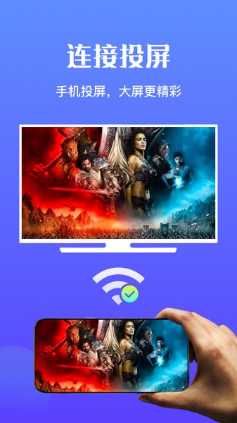 手机WiFi万能无线连接大屏终端设备,将手机上的视频、图片和音乐等投射到大屏设备上播放,开启多屏互动,即享大屏视觉体验!