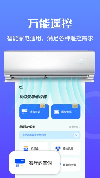 打开家电的万能钥匙,让手机家电遥控的钥匙!让你可以轻松使用智能手机遥控空调、电视等家用电器,随时随地、随心所欲遥控!