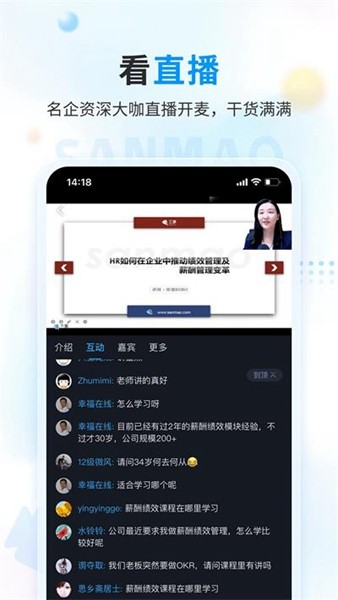 打卡牛人分享工作案例、与同行HR交流学习、专栏专家解疑、班主任一对一指导等。