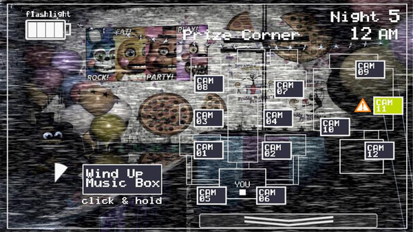 5、为了进入下一晚,玩家必须从12点存活到6点——相当于现实中的8分37秒,移动端为4分30秒。