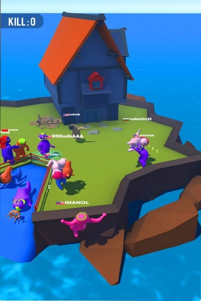 2、竞技对战乐趣:玩家在平台上相互对抗,通过将对手扔出平台获胜,暴力爽快的玩法,充满竞技乐趣。