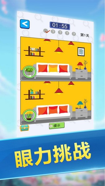 1、从张几乎相同的图片中找出不同点,玩家需要在规定时间中完成,一定要认真应对才行。