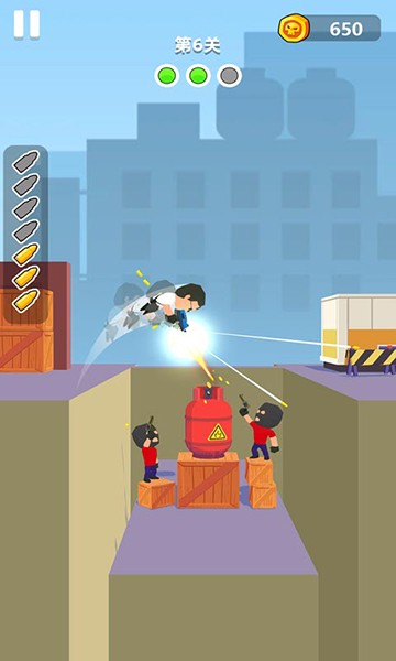《我枪法特牛》中玩家射击敌人的时候,就会进入“子弹时间”,通过合理的操作完成关卡的要求,非常有成就感!