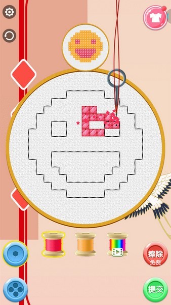 刺了个绣是一款模拟类游戏,玩法是比较休闲的,玩家可以在这里游玩大量的关卡,每一关里面都有不同的图案需要我们去刺绣。在这里你能体验到和现实中非常接近的刺绣体验,使用各种工具进行配合来完成美丽的刺绣作品。关卡中会给出这个作品完整时的图案,我们只要根据这个样子进行制作就可以了。