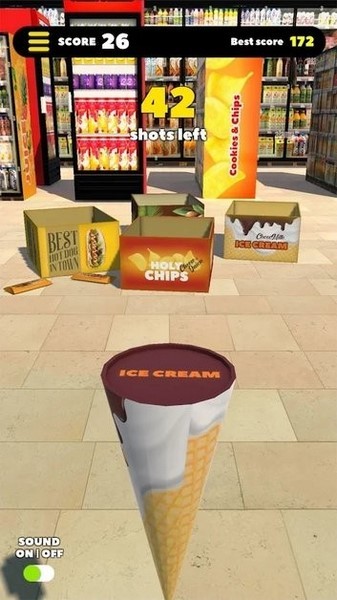 Food Sniper是一款投掷玩法的3D游戏,玩家需要把手中的各种食物都投入到对应的箱子中。每个关卡都有不同的食物,同时会出现多个箱子,箱子上有食物的图片,然后瞄准投入即可。游戏的物理效果是很真实的,而且操作轻松易上手,只要多玩几次就能掌握大概的方法了。快来挑战看看自己能拿多少分吧。