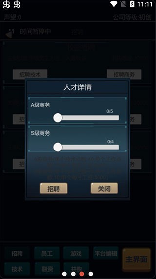 6、玩家在这里可以招技术、平台编辑、还可以融资、并购,把你的游戏平台做大做强。