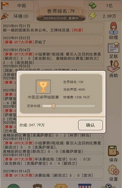 这款《足协模拟器破解版》听起来挺有意思的,就是个中国足球的养成模拟游戏。玩家扮演中国足协的领导人,从培养新人开始一步步打造国家队,听起来挺有挑战性的。游戏里可以自己构建青训体系,制定每天的训练计划,还能发展各级联赛和赛事,感觉像是在经营一个足球帝国。