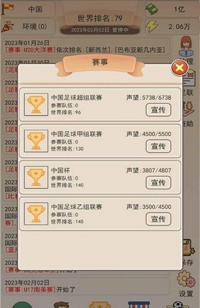 足协模拟器破解版是一款中国足球的模拟养成游戏。在这款游戏中玩家将成为中国足协的领导人,去带队培养一支全新的国足,挖掘人才并投入资源进行培养,从各级联赛开始历练挑战,逐渐走上更大的舞台。玩家可以在游戏中自己去构建各级的培养体系,让人才不会被埋没,并且可以制定每天的培养计划。本页面提供免广告的破解版安装包。
