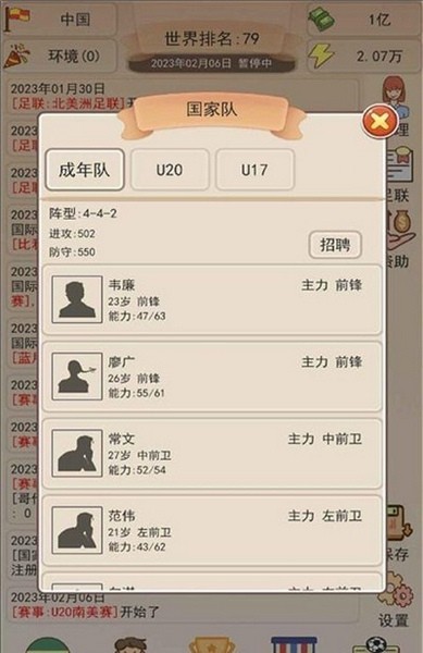 3、各类顶级玩家免费招募,百位玩家自由选择培养能力,提升实力,变强。