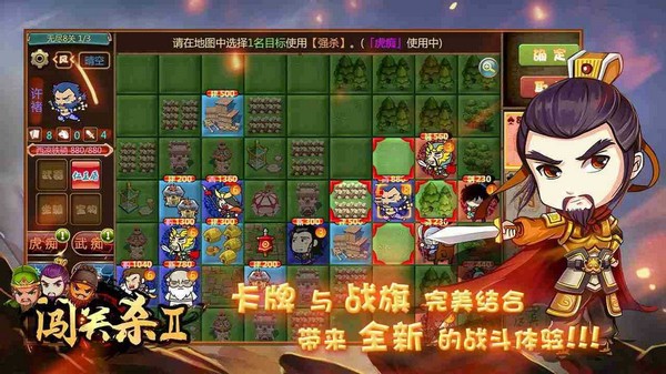 闯关杀2是一款非常好玩的三国策略闯关单机手游,该游戏的画面非常精致,采用Q萌卡通画风,在这里是以经典三国故事为背景,有着三国时期各位名臣武将,玩家可以使用自己喜欢的武将开启闯关,并且游戏很好的融合三国杀与传统战旗玩法,既有卡牌对战的紧张刺激,又有方格步步为营的战术魅力,给玩家带来不一样的游戏乐趣,感兴趣的小伙伴快来下载游玩吧!