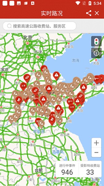 4、点击实时路况可以查看当前地段道路拥堵状况;