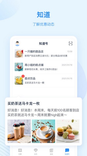 消费者可收到商家内部活动消息、店铺上新海报、专享福利通知.