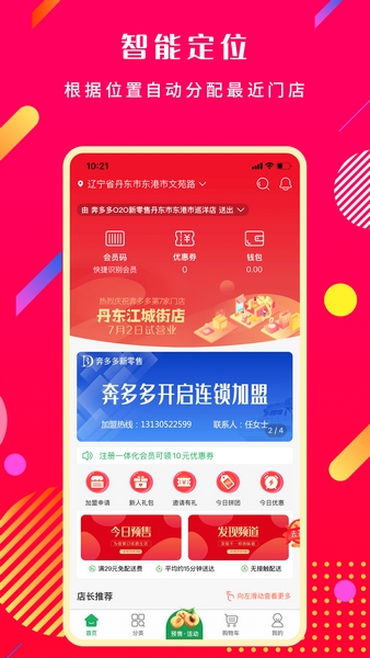 奔多多APP是一款主打O2O新零售门店购物的软件,其将各路线下门店进行数字化,通过手机端便可以随时随地查看门店商品,种类相当丰富,囊括了食品、服装、家居、美妆等应有尽有,满足不同用户的浏览购物需求!且无论是线上还是线下都能通过软件进行快速购物,更加实用!