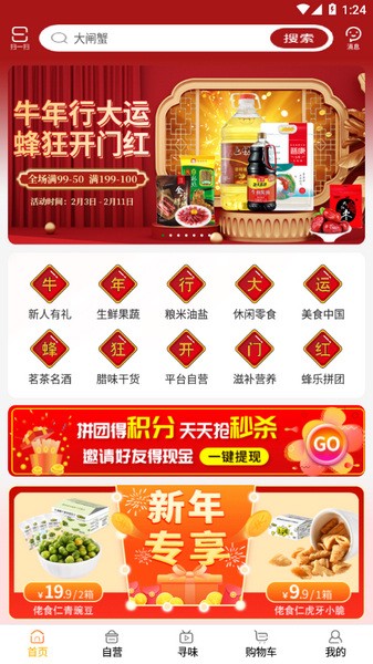 软件亮点还包括品类丰富,从日用品到美妆、零食、穿搭应有尽有,甚至还有9块9包邮的超值商品。更新内容主要是优化了用户体验和修复了一些问题,让使用更加顺畅。总体来说,蜂狂购是一个不错的购物平台,既方便又省钱,适合喜欢网购的人。不过有时候优惠券更新可能有点慢,希望以后能更及时一些。