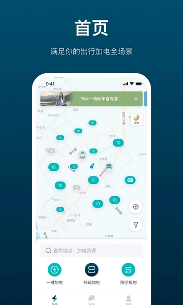 这个APP还有不少实用功能,比如支持一键加电和扫码充电两种方式,随时切换都行。地图上可以清晰看到各个充电桩的位置,点击还能查看详细信息,包括充电单价、停车费用、最大电压等等。开车时不仅会为你规划最佳路线,还能实时更新路况,方便你选择最省时或最近的路线。