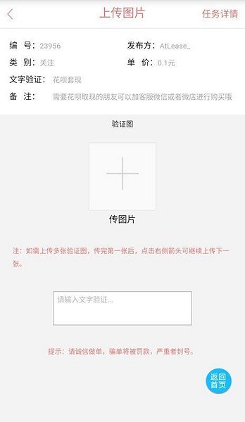 4、我的任务收录了所有通过平台领取的订单信息以及具体任务要求;