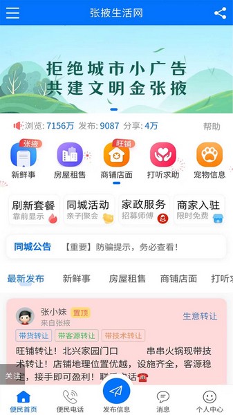 张掖生活网app是一个专为张掖居民打造的便民服务平台,涵盖了从出行、求职到生活缴费等各种日常需求。它整合了本地资讯,用户可以轻松找到所需信息,并通过关键词快速搜索相关内容。软件亮点包括海量高薪职位、丰富的社交功能以及贴心的管理员服务。更新后的版本进一步完善了各项功能,致力于为用户提供更优质的服务体验。作为一个张掖人,我觉得这个app特别方便,尤其是找工作和结交朋友的功能,简直帮上了大忙!无论是本地新闻还是生活动态,都能第一时间掌握,真的很实用。