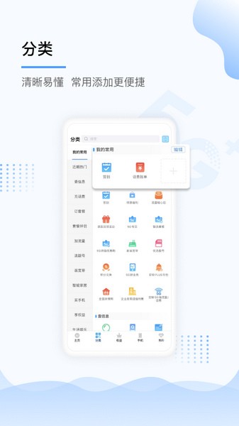 账单、充值记录、积分、流量、套餐余量、已订购业务一键查询,方便快捷。