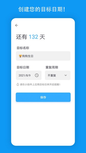 使用小挂件在桌面上显示距离重要日子的天数,例如生日,恋爱纪念日,发工资等,让您不会错过重要的日子!