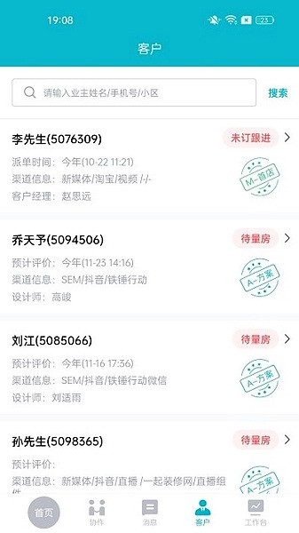 4、用户在一起管家执行各种施工管理动作,具有实时消息通知功能