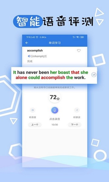 3、每日助理会根据用户设置安排学习任务。学习时间+做题准确率=高分+奖牌。助理会记住作的差的题目,并在后续的任务中再次安排,直到你完全掌握为止!
