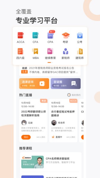 高顿网校app是一款手机在线学习应用,该平台针对多种职称考试进行专项提升,包含海量历年题库支持,并且有着丰富的教师在线课堂让你在线学习观看,大大提升了考题和实际应用中的联系思考,让做题更灵活实际。