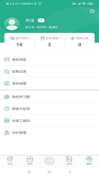5.我的:这里展示用户的基本信息,学习记录收藏课程,消息通知等跟零售云学平台相关模块.