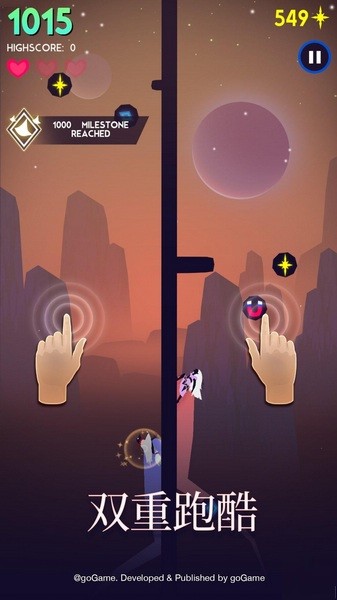 9、轻松简单的操控,使用双手同时控制两位角色来进行跑酷挑战吧!