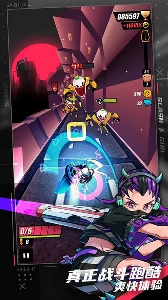 战斗少女跑酷中文版是一款卡通漫画风格的跑酷闯关游戏。在这款游戏中玩家可以操作各种形象的少女角色来挑战不同难度的跑酷关卡,灵活运用走位来规避出现的陷阱,越过障碍物顺利抵达下一个落点,并且玩家可以在跑酷的过程中使用武器来攻击栏目的敌人,不同类型的武器有不同的攻击效果,区别于传统的跑酷竞速玩法,这款游戏的跑酷更加的别开生面。操作感和打击感兼具,挥舞手中的武器清除障碍,狂暴地冲向终点吧。同时,游戏还设计了独特的加速系统,在疾跑的基础上再次加速,进入狂热模式大幅度提高奔跑速度和攻击速度,一路砍瓜切菜,无人能挡。此外,在关卡外,玩家可以收集各种装饰品来打扮自己的角色,各种风格的换装让我们打造亮眼的美少女,还可以分享自己的穿搭给其他的玩家。