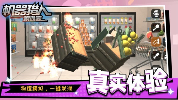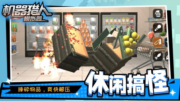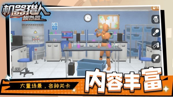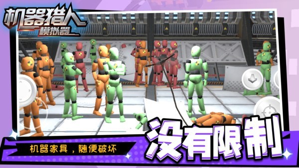 机器猎人模拟器是一款可以让你发泄心中情绪的游戏,这里有很多个场景可以让你去破坏。除了环境物体之外,这里还有很多机器人,为你带来更多的破坏乐趣。可以使用的破坏工具也是非常多的,大大小小的全都有,甚至还有威力超大的炸弹可以使用,让你可以轻松破坏场景里面的每一个东西,将其彻底粉碎。