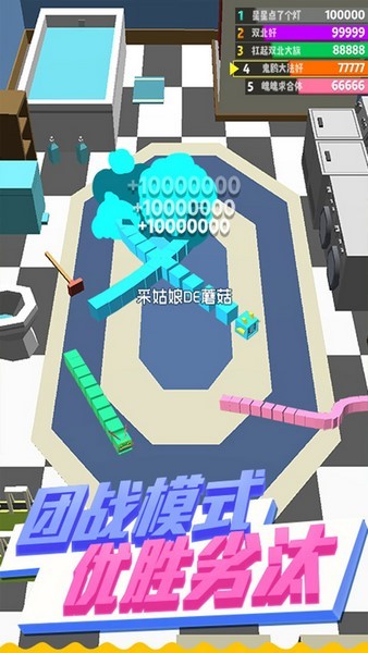 蛇块大作战2是一款贪吃蛇玩法的手机游戏,整个游戏的场景都是在各种室内的,你可以控制自己的由方块组成的蛇在这里吸收各种物体来让自己变得强大。将目标包围住即可将其吸收了,同时也可以用这种方法去击败对手。游戏是看谁的分数最高谁就能获得胜利,不过只有在最后时间结束的时候,所以不到最后一刻很难知道谁才是胜利者。