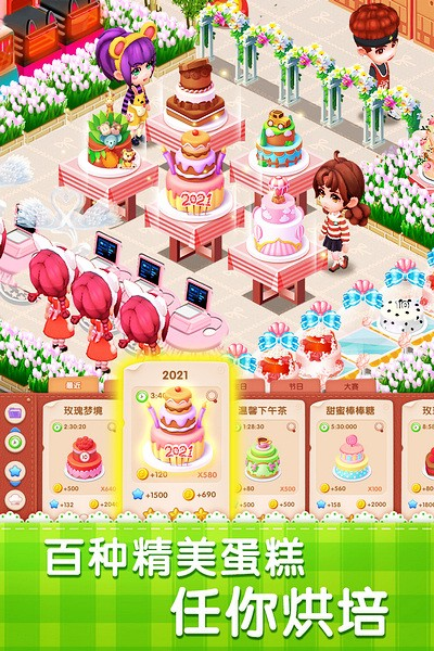 近百种样式各异的精美蛋糕等待玩家来解锁,玩家能驾驭全部吗?精致特色的店铺装饰。