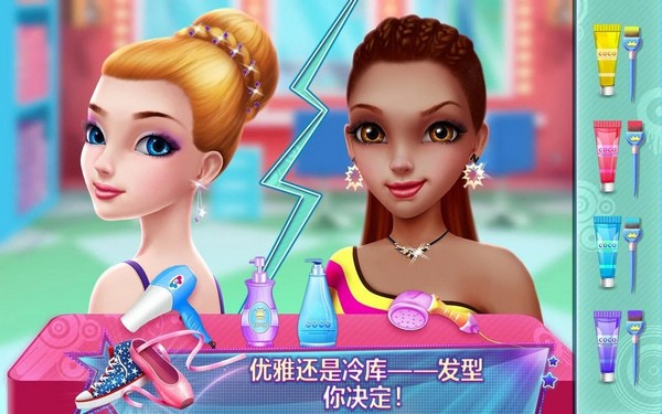 二、自由换装,打造个性角色:游戏提供了丰富的舞蹈服饰供玩家选择,包括多款式的芭蕾舞衣和街舞服装。玩家还可以利用提供的理发美容工具来设计全新的发型和妆容,为自己的角色打造独特的造型。这种自由换装的玩法增加了游戏的趣味性和个性化,让玩家能够充分展现自己的创意和审美。