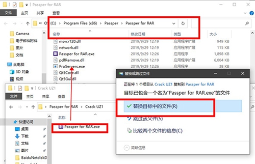 3、成功安装软件后,复制Crack UZ1破解文件夹下的“Passper for RAR.exe”到软件安装目录下替换;