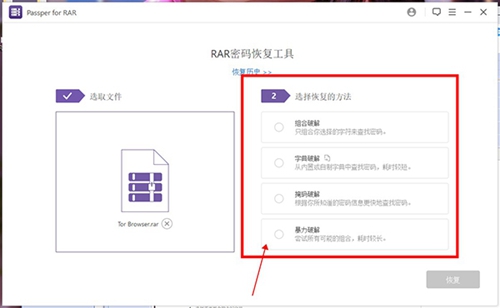 开始恢复RAR文件的密码。恢复后,密码将显示在界面上。
