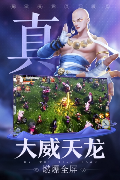 天命传承,开放冒险,帮派城战乐趣无穷,自定心法路数,无招胜有招,深度体验多面战斗,法宝神符由你定,百套时装随心搭,打造个性造型。