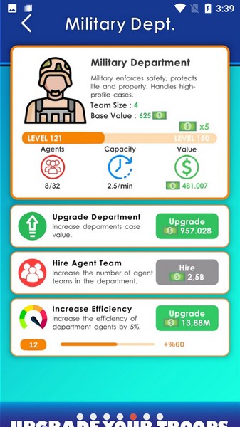 2、玩家可以不断升级你的部门,让他们在各个方面得到提升,并且升级你的急救站拯救生命。