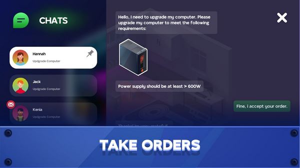在这款游戏中,您可以同时尝试自己作为 PC 建造者、矿场所有者和商业大亨一样的电脑商店。在游戏过程中,您需要完成您服务的客户的订单。您提供几乎所有与计算机相关的服务:从头开始构建 PC、安装软件或游戏、更换计算机、完成订单