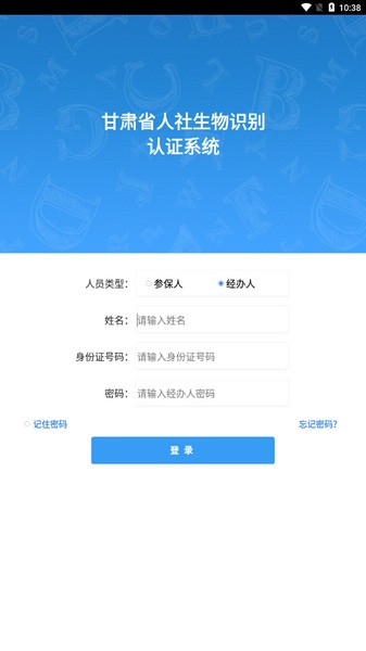 1、用户下载甘肃人社认证app后,在手机上安装并打开,进入页面后以参保人的身份输入正确的姓名及身份证号码,点击登录