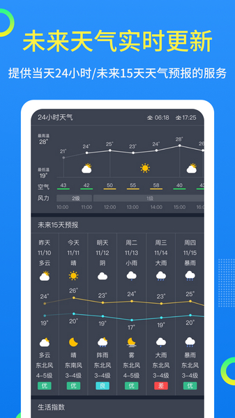 7.未来十五天天气:实时掌握未来15天天气变化,晴天雨天各项指数综合看,根据天气轻松安排户内外活动。