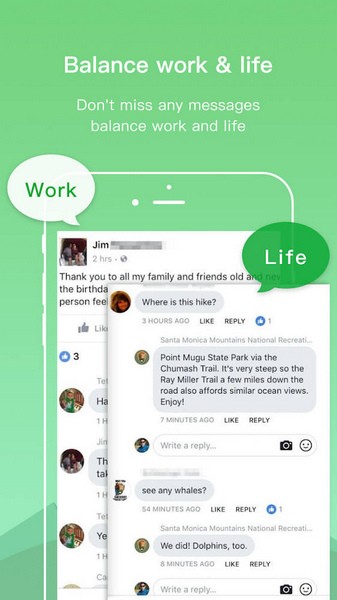 这款叫做“Multiple Accounts免费版”的手机应用多开软件真的很实用。它能在一部手机上同时运行多个相同的应用程序,支持登录不同账号,并且可以随时切换界面操作,特别方便。比如玩游戏时,可以用一个号刷任务,另一个号打副本,效率翻倍!而且它的隐私保护功能做得很好,不用担心个人信息泄露。