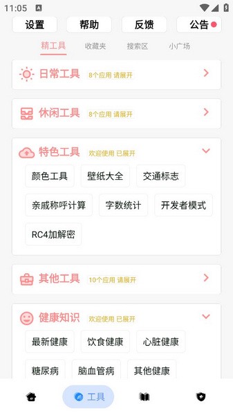 黑软PRO专业版是一款相当不错的手机工具箱APP,内置超多功能,使用也非常的方便。软件囊括了日常工具、休闲工具以及特色工具、健康知识等非常多的分类,还有搜索功能可以让大家更快找到需要的服务。大家只需要打开软件就能够享受到黑软PRO这款APP所提供的尊贵权限,轻松获得完整的使用体验,也让大家日常的手机使用更加便利。
