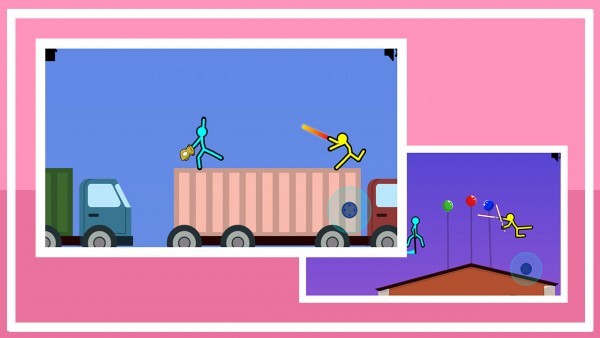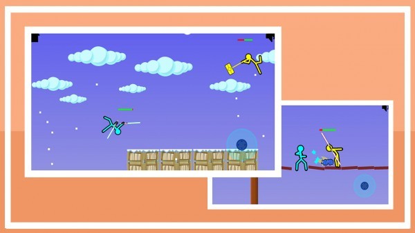 2、开始战斗之后,屏幕上会出现两个虚拟摇杆,分别控制着两位火柴人角色。
