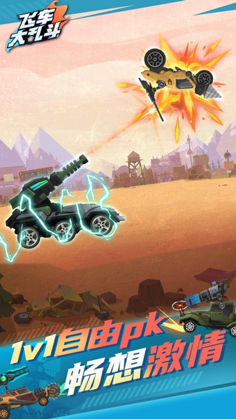 休闲有趣的飞车格斗游戏!基于真实战车物理特性开发,仅需一键就能操作各类特色装备。