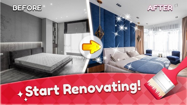 室内家居改造无限金币版是一款十分有趣的三消设计游戏。在这款游戏玩家可以通过完成三消关卡来改造房屋设计,对每个房间进行重新装修,摆放新的家具和装饰物,将老旧房屋焕然一新。玩家可通过三消关卡来获得自己需要的道具,随着玩家通关次数的增多,玩家可获得家具样式就越多。本页面提供无限金币版的安装包。