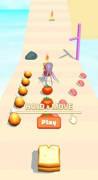 2、灵活的手指操作,你可以控制好自己的三明治来完成不同的跑酷闯关冒险。