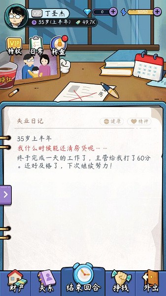 《中年失业模拟器免广告版》是一款超好玩的模拟经营手游,玩家扮演一个被炒鱿鱼的中年男子,为了养活一家四口和还房贷,不得不踏上艰难的社会生存之旅。游戏里没有恼人的广告,无限金币和体力让你轻松开局。你可以选择打工、创业或者搞些小生意,随机事件层出不穷,每次选择都可能带来不同的结局。