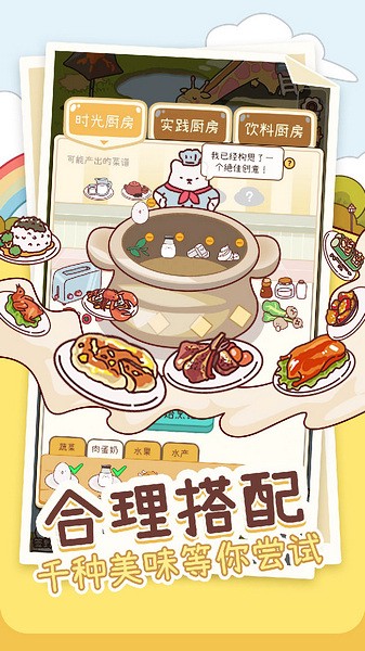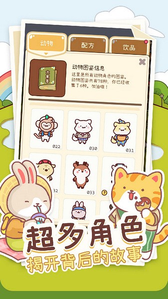 1、游戏中包含多种趣味的菜谱,解锁美食款待其他可爱的小动物。