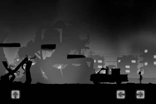 2、走到图片的最左边就进入了下一个场景。与上一个场景风格别无二致,背景出现了高压电塔。可操作动作也变成了3个,前进后退与跳跃。