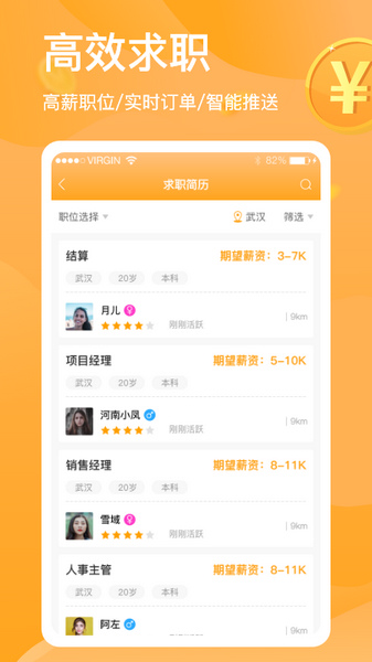 3、求职高效:高薪职位与实时订单智能推送,帮助您快速入职高薪岗位!